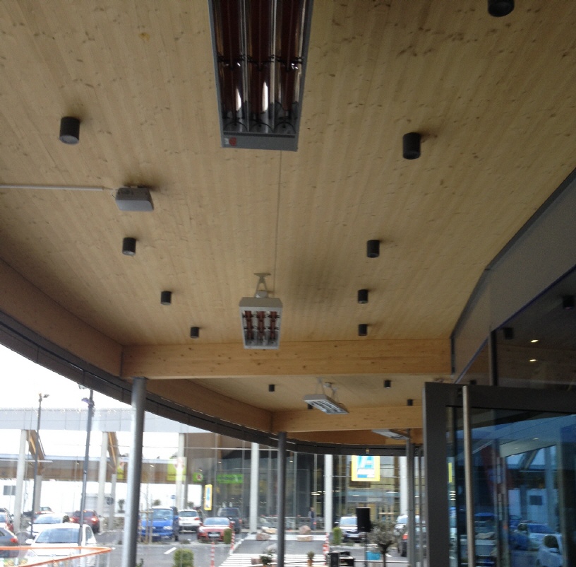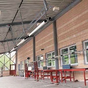 IR-Wärmestrahler sind für das Voll- oder Zusatzheizen von Räumen mit großem Volumen und hohen Decken geeignet. Diese Strahler können auch im Freien eingesetzt werden, z. B. auf Sporttribünen oder Laderampen, um diese trocken und frostfrei zu halten.