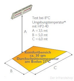 Großer Vorteil der Infrarotstrahler ist, dass einerseits nur beheizt wird wenn effektiv Wärme benötigt wird und andererseits 100% der Wärme sofort nach dem Einschalten des Gerätes spürbar ist.