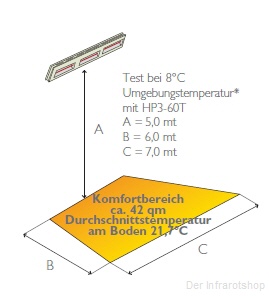 Großer Vorteil der Infrarotstrahler ist, dass einerseits nur beheizt wird wenn effektiv Wärme benötigt wird und andererseits 100% der Wärme sofort nach dem Einschalten des Gerätes spürbar ist.