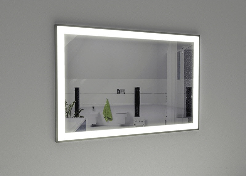 Infranomic Spiegelheizung 600 W mit LED Beleuchtung 4-seitig im Rahmen eingebaut