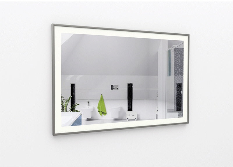 Infranomic Spiegelheizung 700 W mit LED Beleuchtung 4-seitig im Rahmen eingebaut