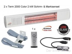 Mit dem Burda Term 2000 Color URCAC200VH7016 Komplett-Set (2 x 2 kW oder 2 x 1,65 kW) in anthrazit erhalten Sie mit 2 Burda Term Color, lichtreduzierten Heizstrahlern die ... 1.299,00 EUR (incl. 19% USt. zzgl. Versand)