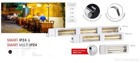 Die Vorteile liegen auf der Hand: der kompakte, formschöne Infrarotheizstrahler SMART IP24 bietet erstklassige, effiziente Heizleistung und ist vielseitig in Innen- und geschützten Außenbereichen einsetzbar. Ob auf dem Balkon, der Terrasse oder am Arbeitsplatz – der leistungsstarke, wassergeschützte Reflektor sorgt mit bewährter Infrarot-Kurzwellentechnologie von BURDA PerfectClime für die perfekte Wohlfühlatmosphäre. Die beliebten Burda Heizstrahler Smart IP24 mit Infrarot Kurzwellentechnologie in Low Glare für Privat, Gewerbe, Industrie und öffentliche Einrichtungen! Wärmestrahlung mit wenig Licht auf Knopfdruck: Die revolutionäre Infrarot-Kurzwellentechnologie unserer Heizstrahler sorgt bereits mit dem Anschalten sofort für wohlige Wärme. Dies geschieht ohne das sonst übliche Vorheizen und den damit verbundenen Kosten sowie ohne die sonst üblichen Wärmeverluste durch Luftzug oder aufsteigende Wärme. Dank der LOW GLARE Strahler-Technologie wird die Rotlichtabstrahlung deutlich reduziert und es entsteht eine angenehm weiche Lichtquelle, die bestehende Ambiente-Beleuchtungen nicht beeinflusst.