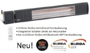 Steuern und dimmen Sie den brandneuen Bluetooth Terrassenstrahler, BTURCAC200V9010, ab sofort bequem und sehr einfach, mittels einem am Heizstrahler angebrachten Schalter, mittels der serienmäßig mitgelieferten Infrarot-Fernbedienung oder besonders innovativ mit Ihrem Smartphone (Android, IOS) über die spezielle und kostenlos erhältliche BURDA PERFECTCLIME APP.