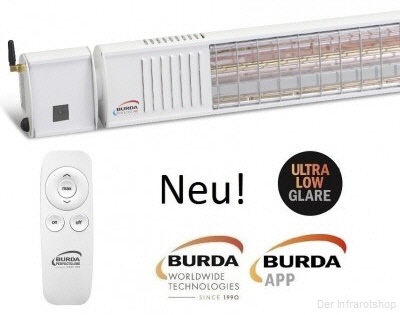 Der neue, komplett wasserdichte Burda Bluetooth Infrarot Terrassenstrahler BTURCAC200V9010 TERM2000 IP67 mit Ultra Low Glare Heizröhre inkl. Fernbedienung, integriertem Schalter und Bluetooth Steuerung per BURDA PERFECTCLIME APP ist Ihr idealer Burda Heizstrahler für Sofortwärme auf Knopdruck!