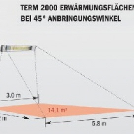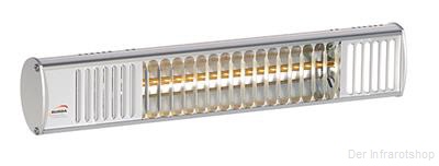 Der leistungsstarke Infrarotheizstrahler mit Spritzwasserschutz IP44 in der sehr hochwertigen Ausführung Aluminium poliert ist mit einer Hochleistungsröhre ausgestattet, die sich sowohl für die Terrasse, für Schirm-Installationen sowie auch zur Flächenwärme von Gewerbe und Industrie eignet.