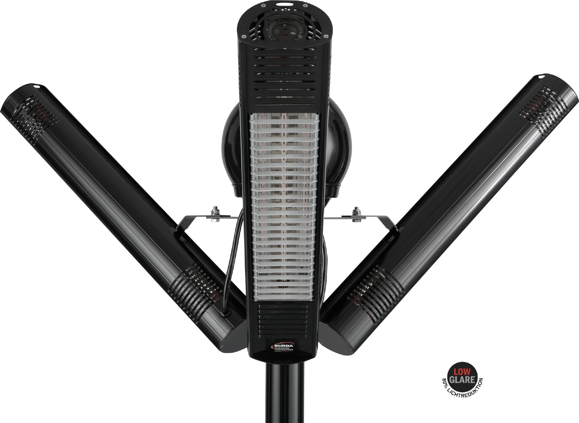 Wahlweise in den Gehäusefarben Alu Silber poliert, Wei RAL9010 und Schwarz RAL9005 erhältlich. Die ULTRA LOW GLARE Ausführung der Heizstrahler mit 80 Prozent weniger Rotlichtanteil sorgt für ein angenehmes, augenfreundliches Ambiente.