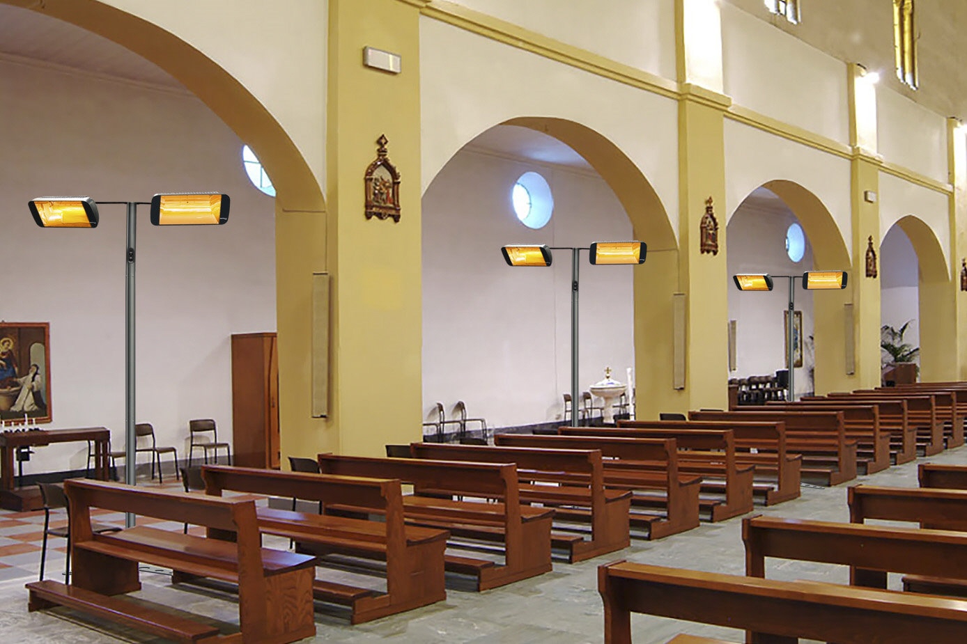 Die Heizstrahler haben je 1,5 oder 2 kW, sind einstellbar und strahlen eine homogene Wärme aus.