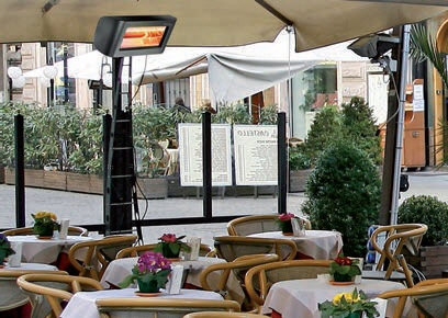 Terrassenheizstrahler Heliosa® Hi Design 994 Amber Light - IPx5 - 2.000 W mit mobilem Ständer Giraffa und Heizstrahler HELIOSA® 66 in den Trendfarben Anthrazit oder Carraraweiß.