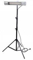 Der Heizmeister 2000 IP65 2 kW ist ein hochwertiger Infrarot Heizstrahler mit modernster Infrarot Technik (IR A) und leistungsstarker HeLen Goldröhre - für alle Außenanwendungen geeignet, optimierter Wirkungsgrad, erstklassiger Verarbeitung. Hier in Kombination mit einem Dreibeinstativ in der Farbe schwarz.