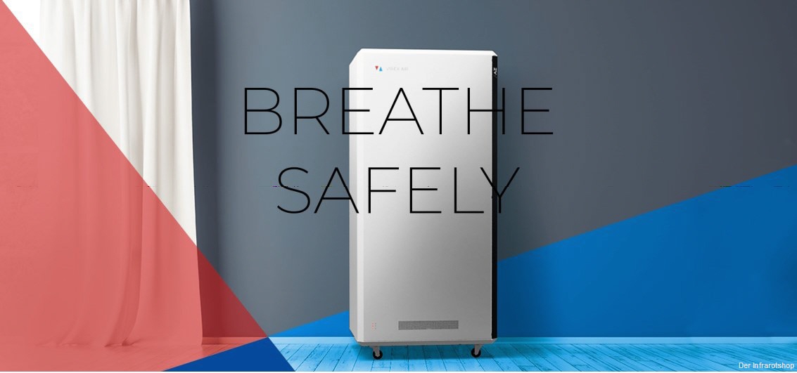 VIREX AIR Luftreiniger mit HEPA14-Filtern und UV-C Behandlungssystemen gewährleistet eine hervorragende Raumluftreinigung mit einem Wirkungsgrad von mehr als 99,995%.
