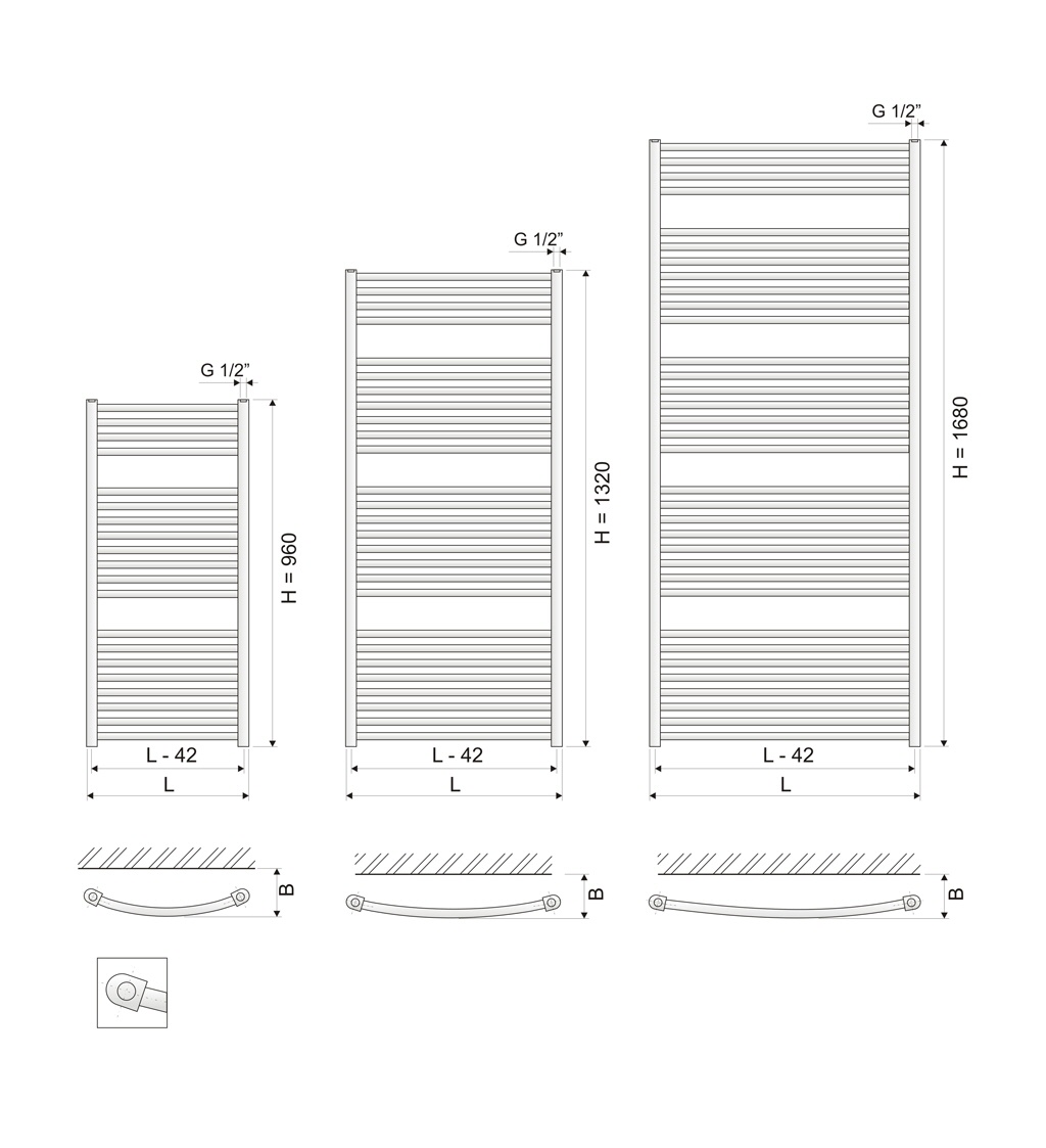 Die Leiterheizung ist in zwei Ausführungen erhältlich: mit geraden Sprossen KD-E oder mit gebogenen Sprossen KDO-E.
