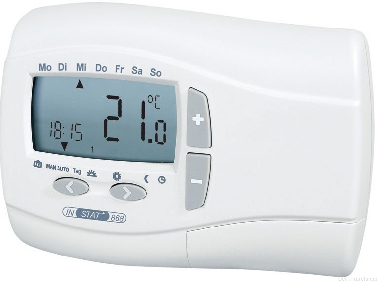Der batteriebetriebene Funk-Thermostat „INSTAT-868“ dient dem temperatur- und zeitabhängigen Schalten von BURDA Heatpanels in Verbindung mit einer INSTAT-Schalteinheit. Die Bedienung ist denkbar einfach. Es können Tagesprogramme, Wochenprogramme und vieles mehr eingerichtet werden. Das Funkthermostat kann auch für elektrische Verbraucher wie zum Beispiel Umwälzpumpen, Radiatoren eingesetzt werden.